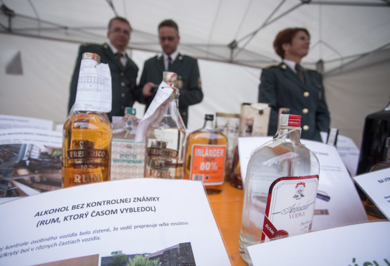 Ukážka pašovaného alkoholu počas Národného dňa colníkov na Hlavnom námestí. Bratislava, 22. september 2018. Foto: SITA/Braňo Bibel