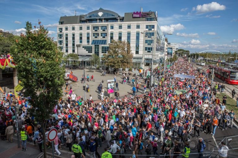 V nedeľu sa v Bratislave konal druhý Národný pochod za život. Ulicami mesta prešlo 70 000 – 85 000 ľudí. Foto: SITA/Marko Erd