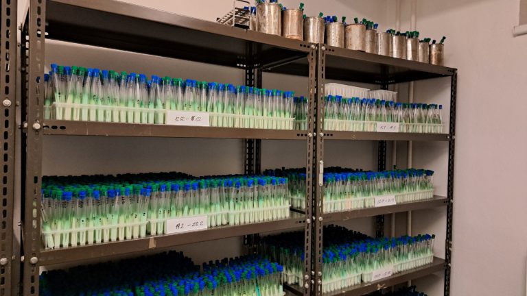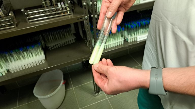 Vzorky spút v rámci vyšetrovania prítomnosti tuberkulózy v Národnom ústave tuberkulózy, pľúcnych chorôb a hrudníkovej chirurgie vo Vyšných Hágoch. Vyšné Hágy, 21. marec 2024. Foto: SITA/Mária Frisová
