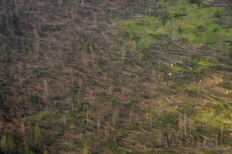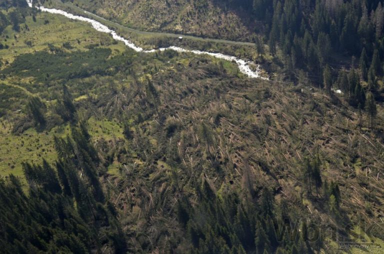 Pohľad na následky veternej smršte vo Vysokých Tatrách. Foto: SITA/Radoslav Maťaš
