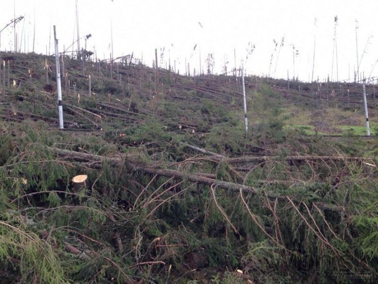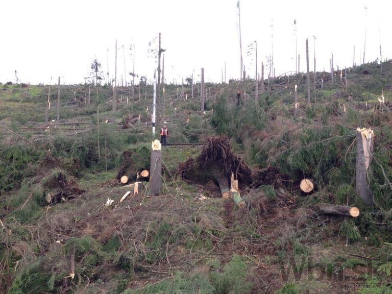 Pohľad na následky veternej smršte vo Vysokých Tatrách. Popadané stromy brzdia aj vlakovú dopravu. Foto: SITA/Radoslav Maťaš