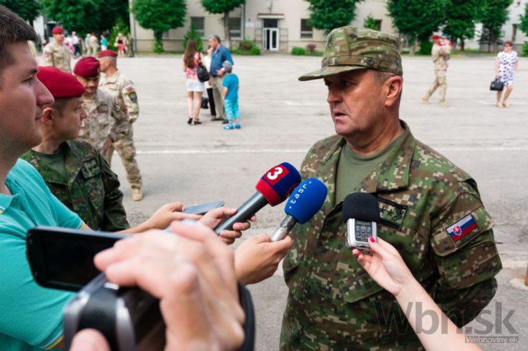 Zástupca Generálneho štábu Ozbrojených síl SR Peter Gajdoš (vpravo) počas brífingu po slávnostnom nástupe príslušníkov Ozbrojených síl SR po návrate z operácie Resolute Support v Afganistane. Žilina, 3. júl 2015. Foto: SITA/Milo Fabian
