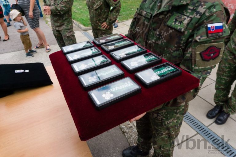 Jeden z príslušníkov ozbrojených síl s pamätnými medailami pre veteránov počas slávnostného nástupu príslušníkov Ozbrojených síl SR po návrate z operácie Resolute Support v Afganistane. Žilina, 3. júl 2015. Foto: SITA/Milo Fabian