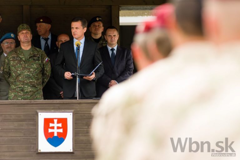 Štátny tajomník Ministerstva obrany SR Miloš Koterec (v prvom rade druhý zľava) počas príhovoru príslušníkom Ozbrojených síl SR pri príležitosti ich slávnostného nástupu po návrate z operácie Resolute Support v Afganistane. Žilina, 3. júl 2015. Foto: SITA/Milo Fabian