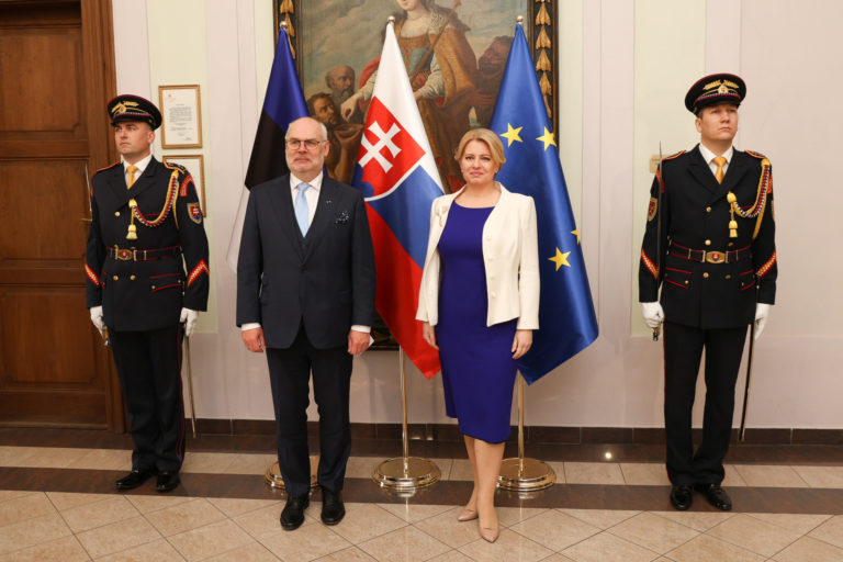Sprava: Prezidentka SR Zuzana Čaputová a estónsky prezident Alar Karis počas oficiálnej návštevy prezidenta Estónska na Slovensku. Košice, 28. marec 2023. Foto: SITA/Marek Lukáč