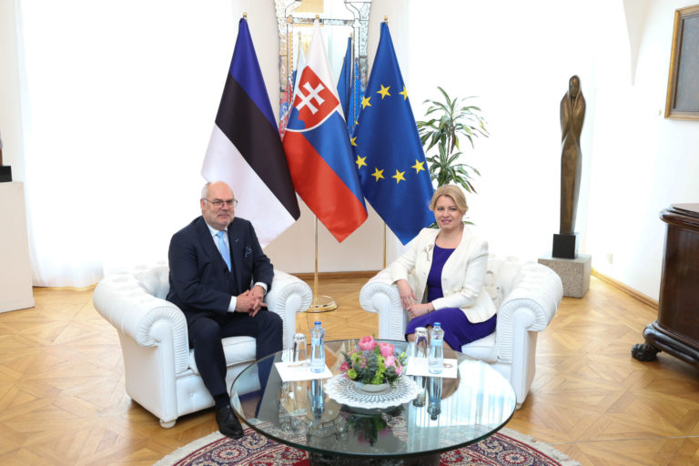 Sprava: Prezidentka SR Zuzana Čaputová a estónsky prezident Alar Karis počas rokovania pri príležitosti oficiálnej návštevy prezidenta Estónska na Slovensku. Košice, 28. marec 2023. Foto: SITA/Marek Lukáč