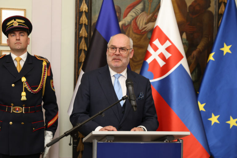 Estónsky prezident Alar Karis počas tlačovej besedy v rámci oficiálnej návštevy prezidenta Estónska na Slovensku. Košice, 28. marec 2023. Foto: SITA/Marek Lukáč