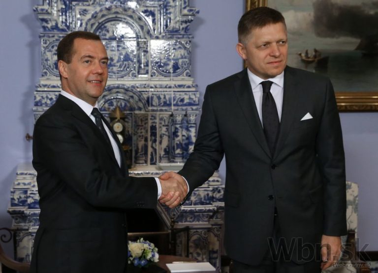 Slovenský premiér Robert Fico sa stretol v Moskve aj s ruským premiérom Dmitrijom Medvedevom. Foto: SITA/AP