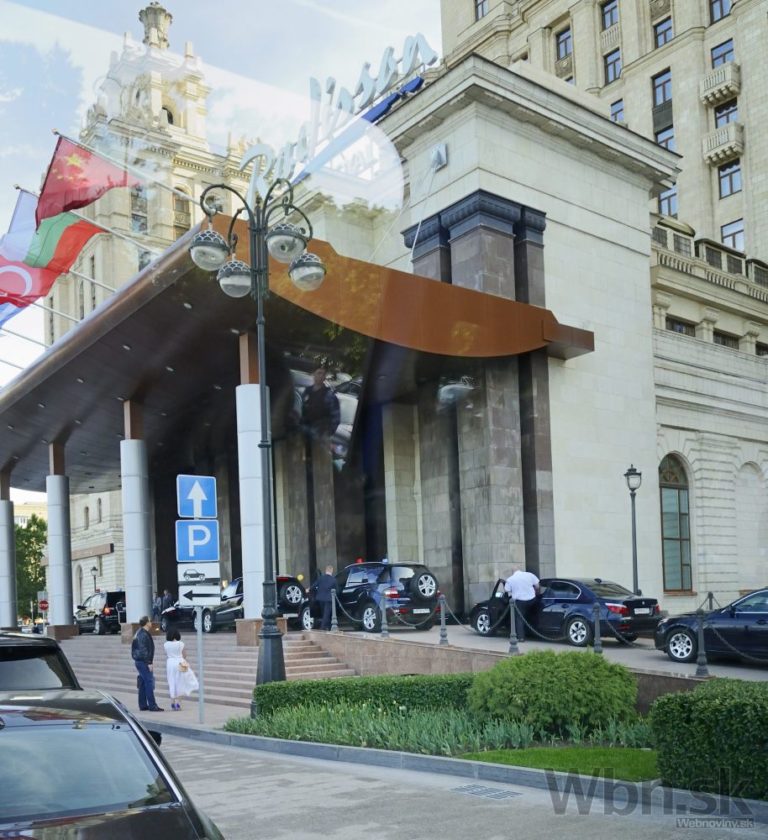 Vládna delegácia Slovenskej republiky pred hotelom Radisson Royal v Moskve počas pracovnej návštevy premiéra SR v Ruskej federácii. Moskva, Rusko, 1. jún 2015. Foto: SITA/Jozef Jarošík