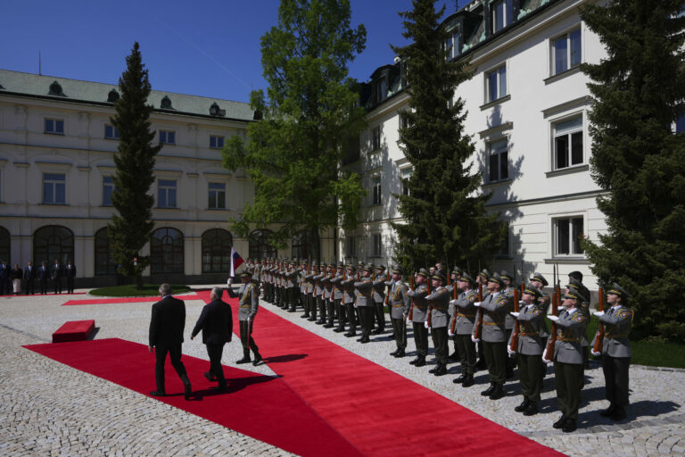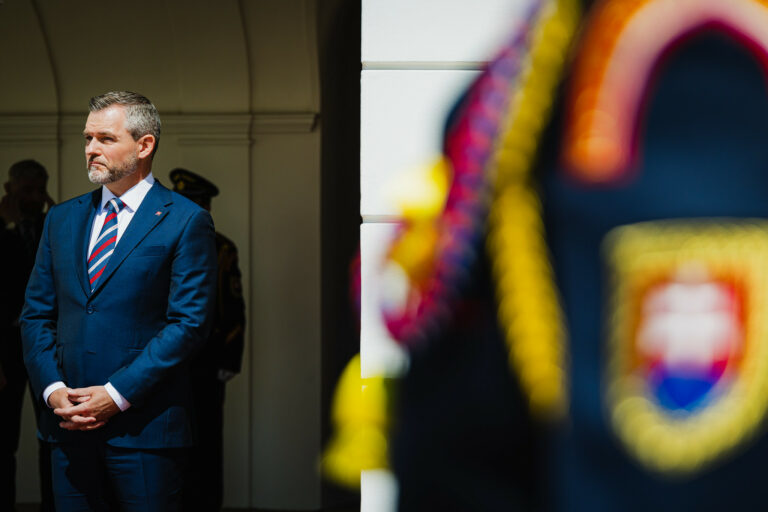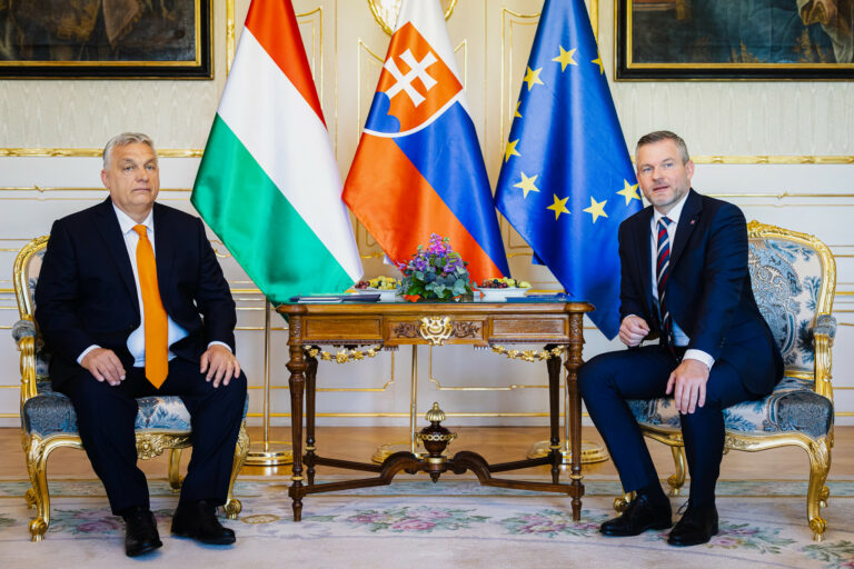 Prezident SR Peter Pellegrini počas prijatia premiéra Maďarska v Prezidentskom paláci v rámci oficiálnej návštevy predsedu vlády Maďarska na Slovensku. Bratislava, 28. apríl 2025. Foto: SITA/Kancelária prezidenta SR