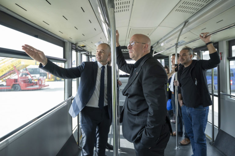 Sprava: Minister dopravy Jozef Ráž a generálny riaditeľ Letiska M. R. Štefánika Dušan Novota počas prehliadky priestorov Letiska M. R. Štefánika, po ktorej informovali o pripravenosti bratislavského letiska na letnú sezónu. Bratislava, 26. apríl 2024. Foto: SITA/Milan Illík