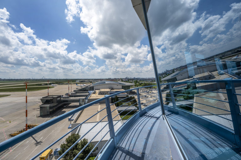 Riadiaca veža počas prehliadky priestorov Letiska M. R. Štefánika v Bratislave za účasti ministra dopravy a generálneho riaditeľa Letiska Bratislava, po ktorej informovali o pripravenosti bratislavského letiska na letnú sezónu. Bratislava, 26. apríl 2024. Foto: SITA/Milan Illík