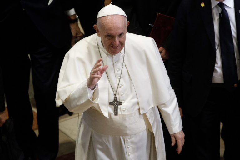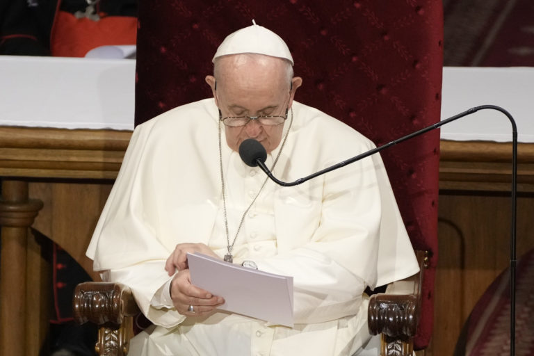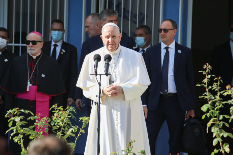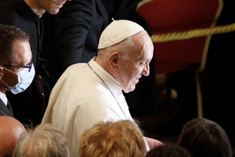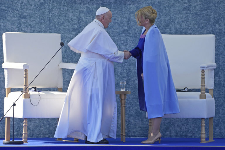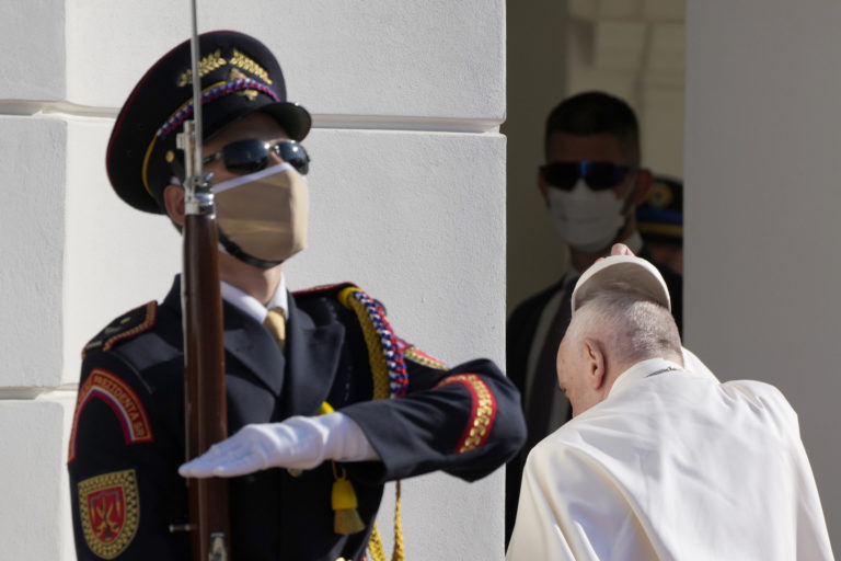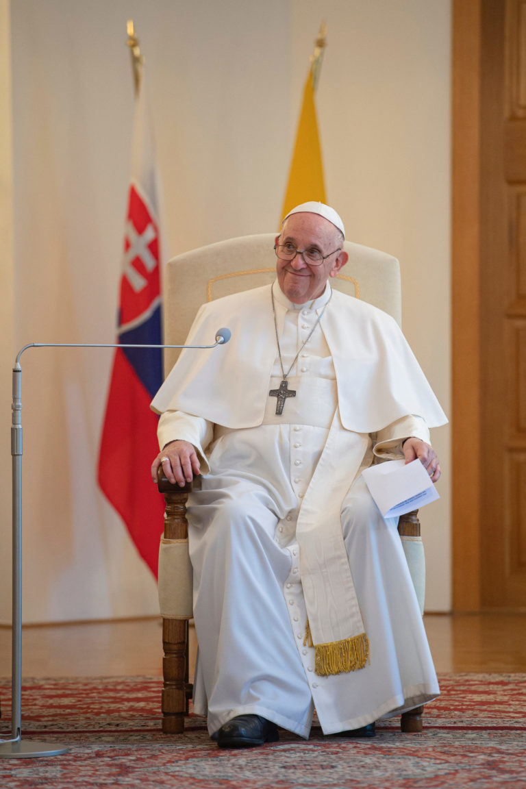 Príhovor pápeža Františka po stretnutí so Zuzanou Čaputovou v Prezidentskom paláci. Bratislava, 13. september 2021. Foto: SITA/AP.