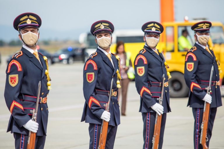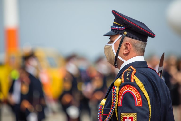 Čestná stráž prezidenta SR počas rozlúčkového ceremoniálu s pápežom Františkom na bratislavskom letisku pred jeho odletom zo Slovenska. Bratislava, 15. september 2021. Foto: SITA/Jana Birošová