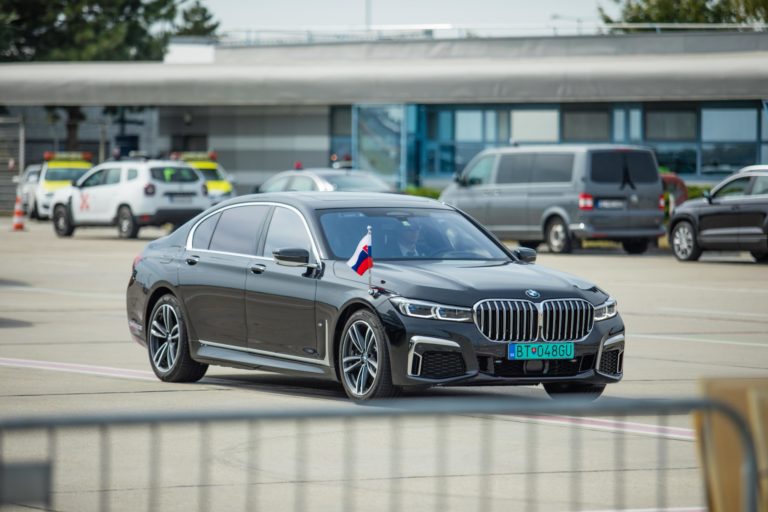Vozidlo s pápežom Františkom počas príchodu na rozlúčkový ceremoniál na bratislavskom letisku pred odletom Svätého Otca zo Slovenska. Bratislava, 15. september 2021. Foto: SITA/Jana Birošová