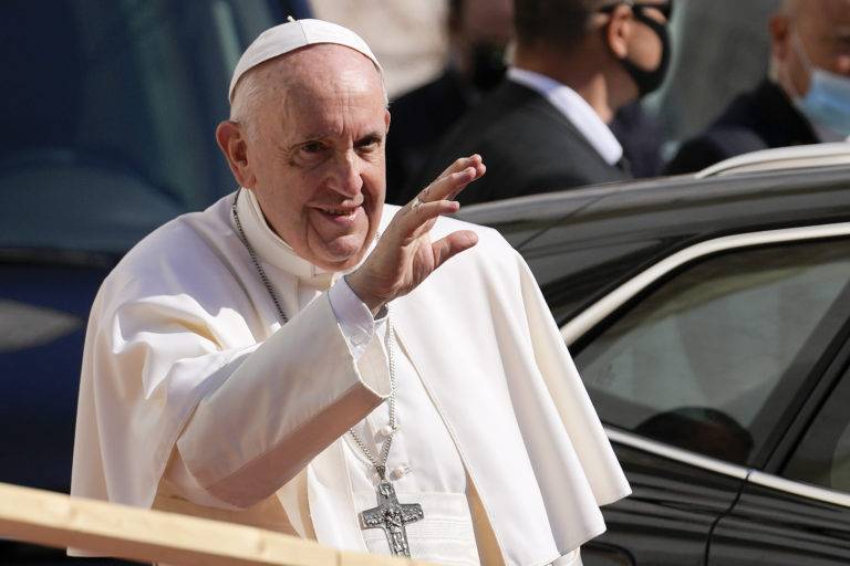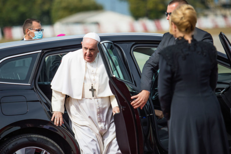 Pápež František prišiel na Apoštolskú nunciatúru v Bratislave. Bratislava, 12. september 2021. Foto: SITA/AP