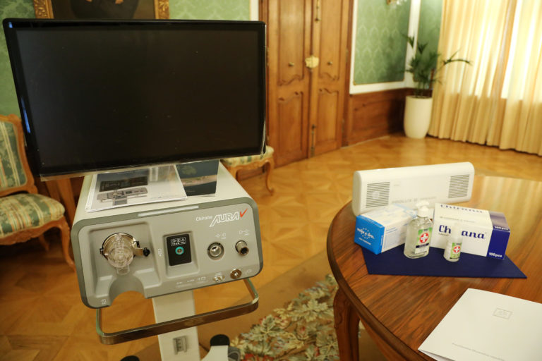 Zdravotnícke pomôcky a prístroje, darované Svätému Otcovi od prezidentky SR po spoločnom stretnutí v Prezidentskom paláci. Bratislava, 13. september 2021. Foto: SITA/Kancelária prezidentky SR