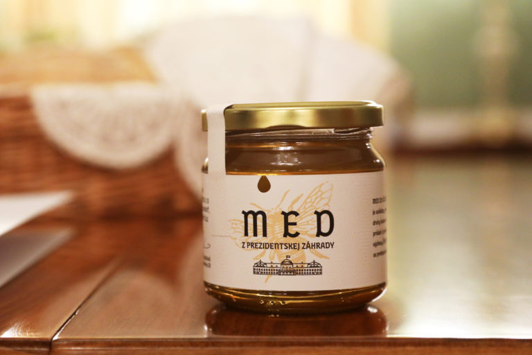 Med od včiel z úľov v Prezidentskej záhrade, darovaný Svätému Otcovi od prezidentky SR po spoločnom stretnutí v Prezidentskom paláci. Bratislava, 13. september 2021. Foto: SITA/Kancelária prezidentky SR