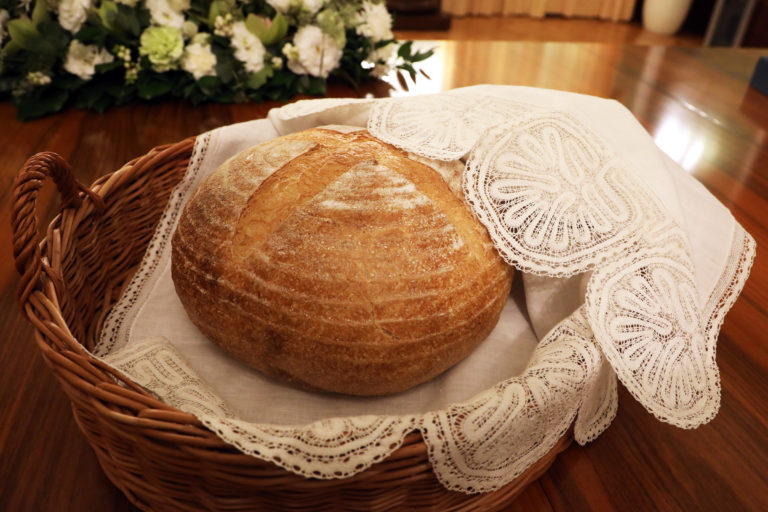 Chlieb, darovaný Svätému Otcovi od prezidentky SR po spoločnom stretnutí v Prezidentskom paláci. Bratislava, 13. september 2021. Foto: SITA/Kancelária prezidentky SR