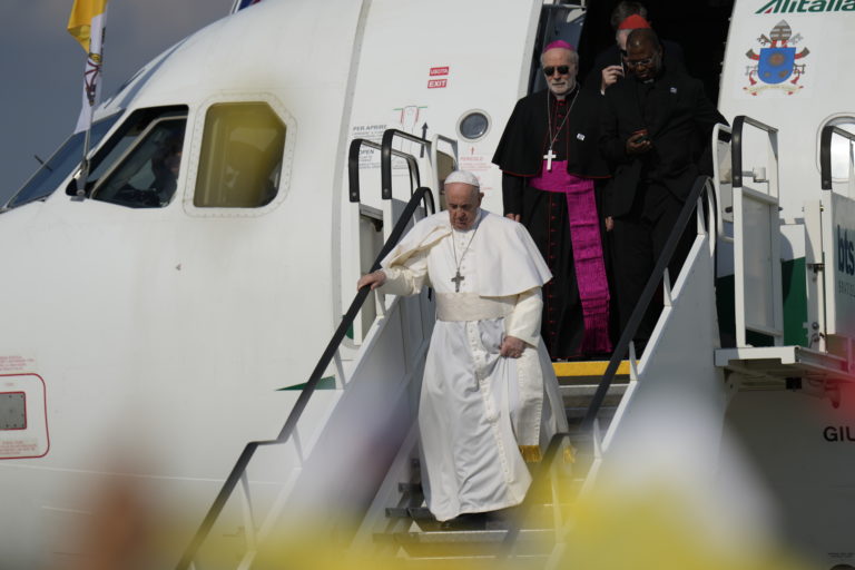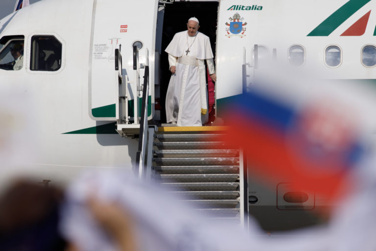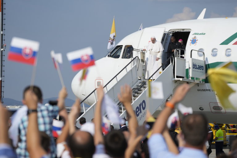 Lietadlo pápeža Františka pristálo na Letisku M. R. Štefánika v Bratislave. Bratislava, 12. september 2021. Foto: SITA/AP/Petr David Josek