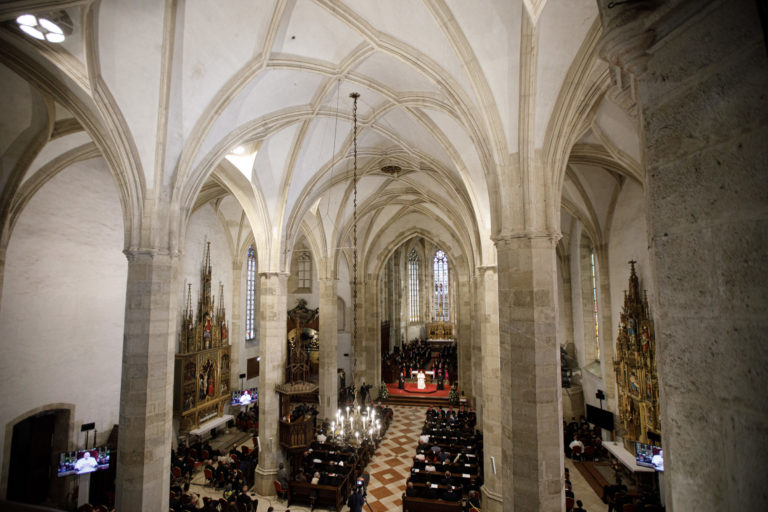 Atmosféra počas stretnutia Svätého Otca s biskupmi, kňazmi, zasvätenými osobami, seminaristami a katechétmi v Katedrále sv. Martina v Bratislave. Bratislava, 13. september 2021. Foto: SITA/Branislav Bibel