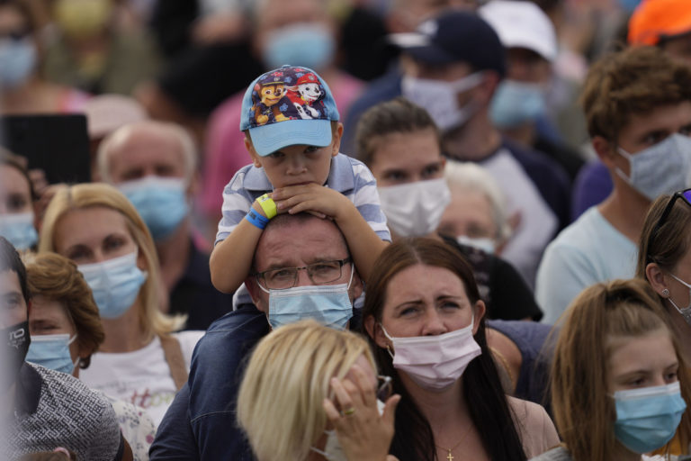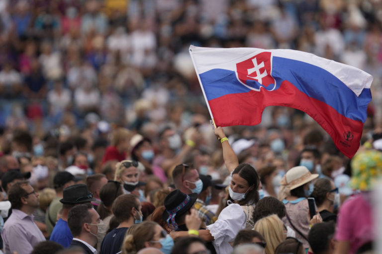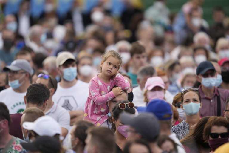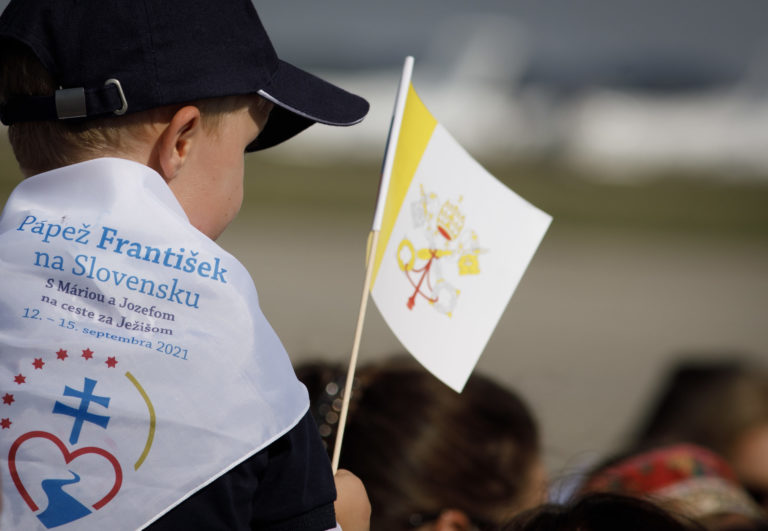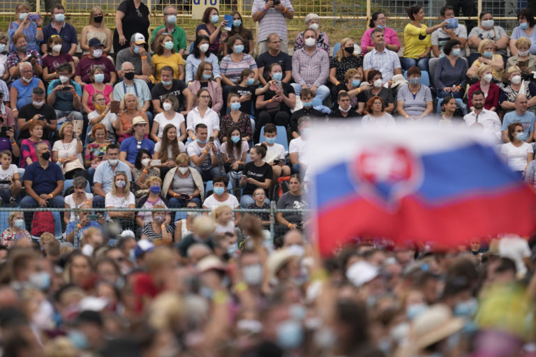 Veriaca pred príchodom Svätého Otca na otvorenom priestranstve pri Národnej svätyni v aštíne, kde pápež František odslúži pri príležitosti celonárodnej púte k Sedembolestnej Panne Márii slávnostnú svätú omšu. Šaštín - Stráže 15. september 2021. Foto: SITA/Martin Medňanský