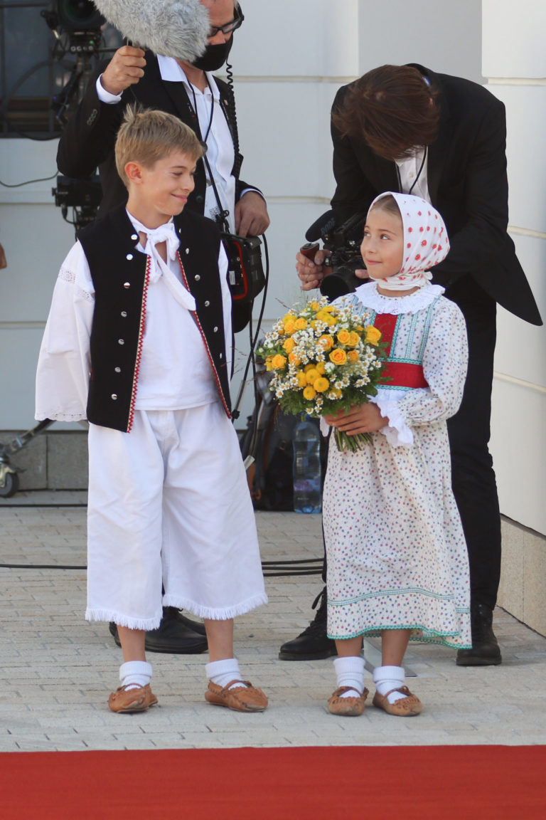 Deti počas privítacieho ceremoniálu v Prezidentskom paláci. Bratislava, 13. september 2021. Foto: SITA/Alexandra Čunderlíková