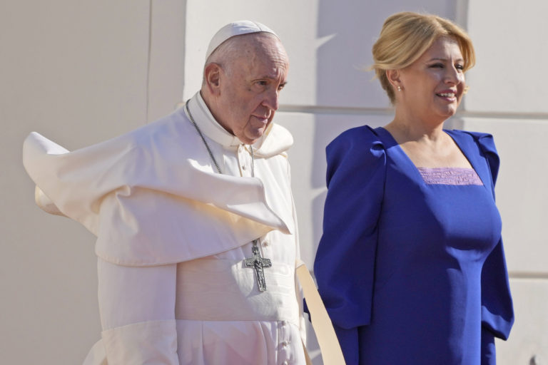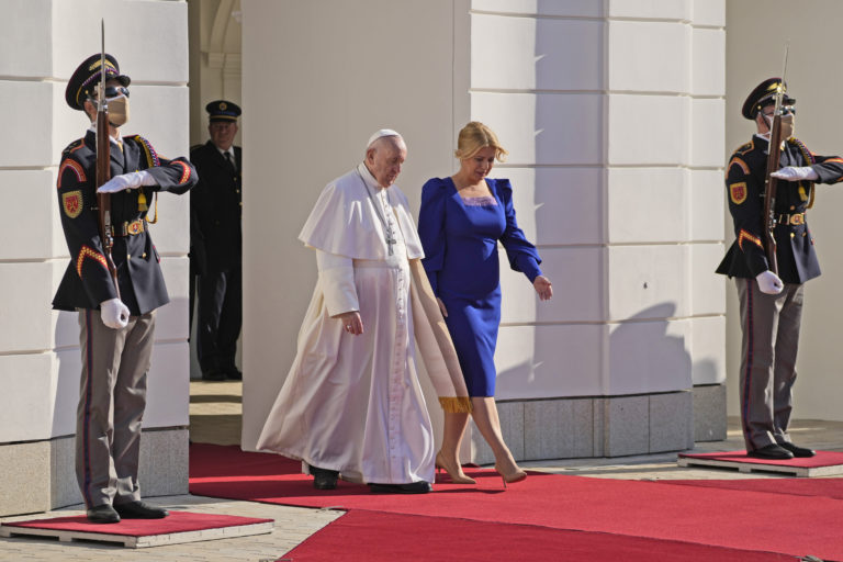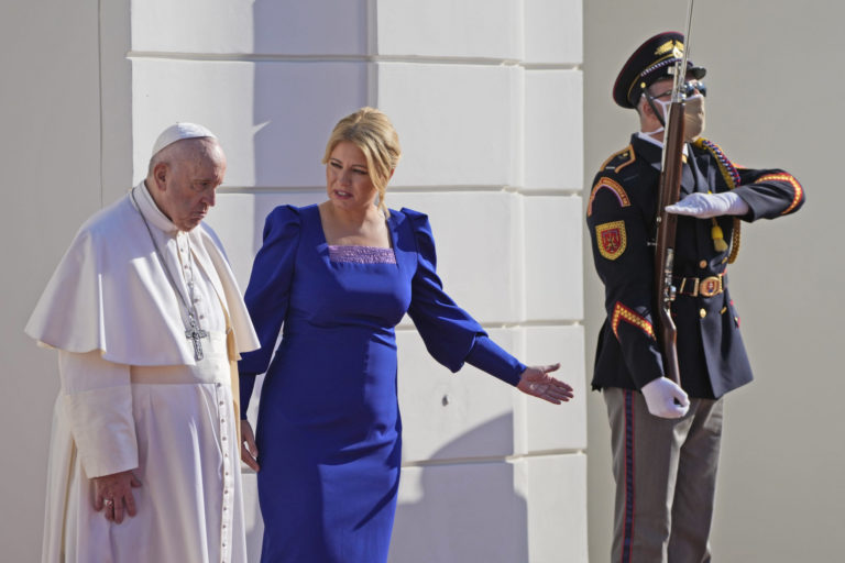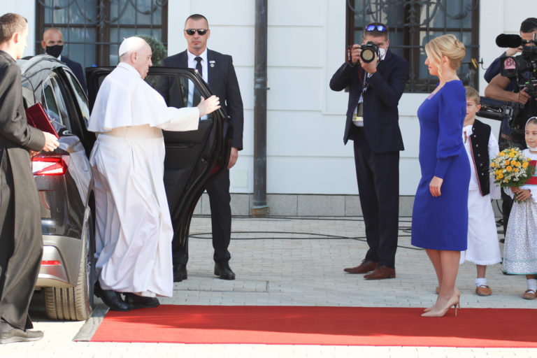 Prijatie pápeža Františka prezidentkou Zuzanou Čaputovou v Prezidentskom paláci. Bratislava, 13. september 2021. Foto: SITA/AP.