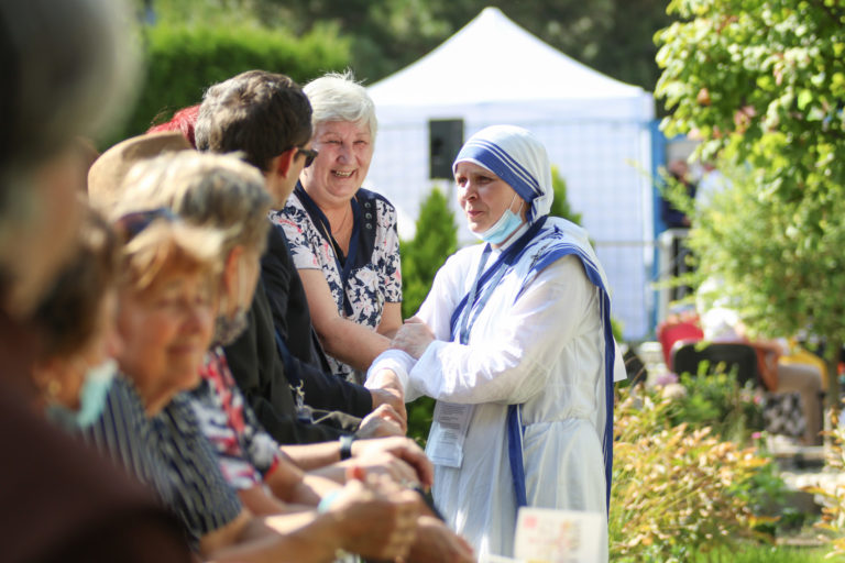 Návštevníci počas súkromnej návštevy Svätého Otca v bratislavskom Centre Betlehem. Bratislava, 13. september 2021. Foto: SITA/Alexandra Čunderlíková