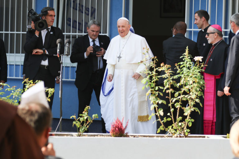 Pápež František počas súkromnej návštevy bratislavského Centra Betlehem. Bratislava, 13. september 2021. Foto: SITA/Alexandra Čunderlíková