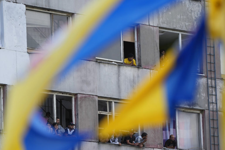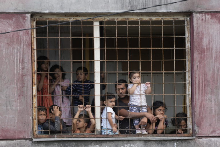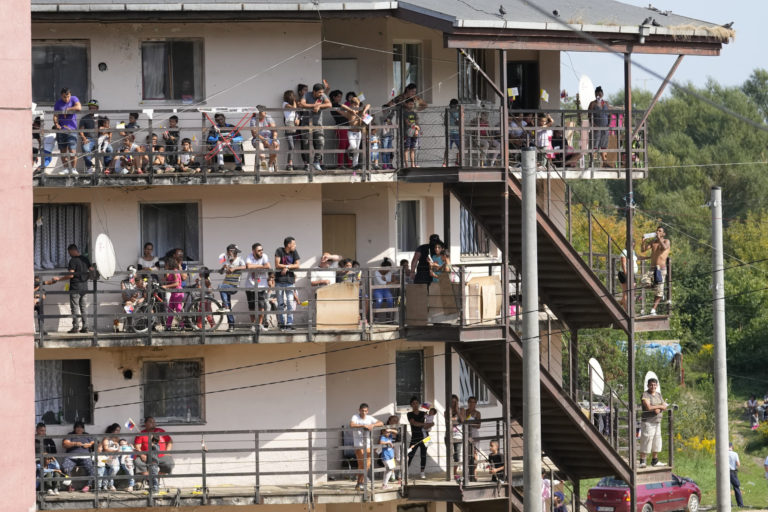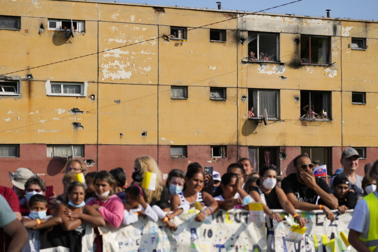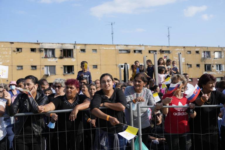 Obyvatelia sídliska Luník IX. očakávajú návštevu pápeža Františka. Košice, 14. september 2021. Foto: SITA/AP.