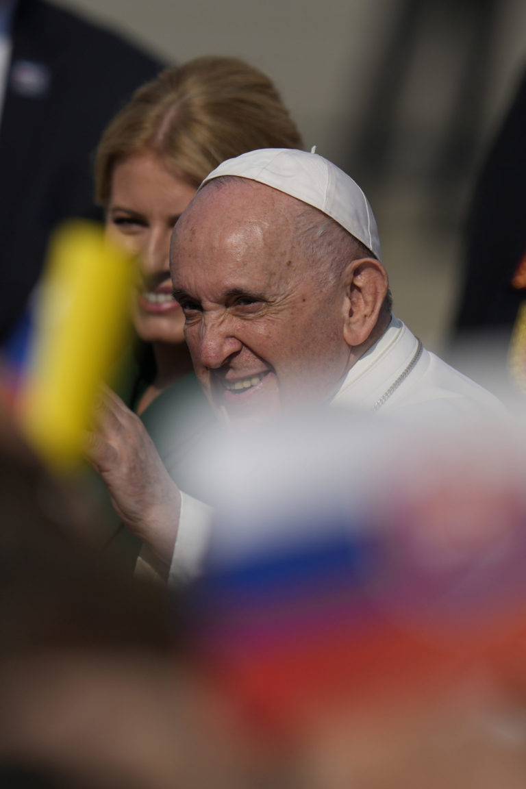 Pápež František počas rozlúčkového ceremoniálu na bratislavskom letisku pred odletom Svätého Otca zo Slovenska. Foto: archívne, SITA/Jana Birošová