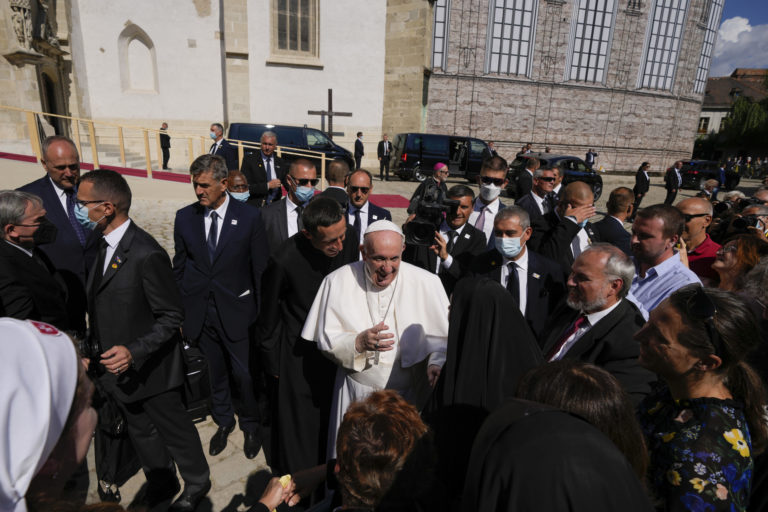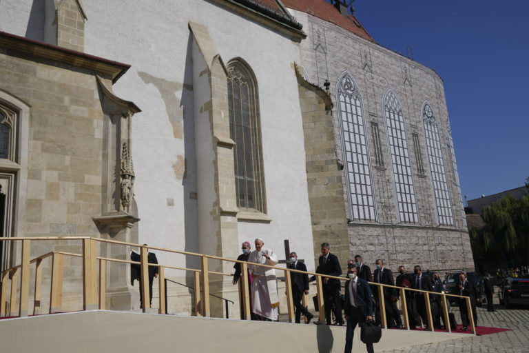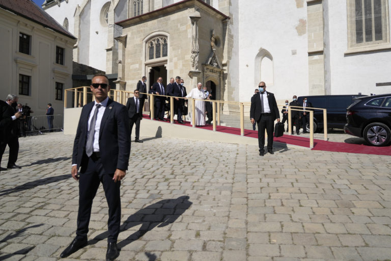 Pápež František opúšťa Katedrálu sv. Martina. Bratislava, 13. september 2021. Foto: SITA/AP.