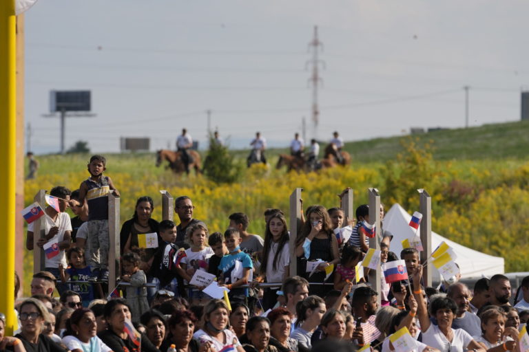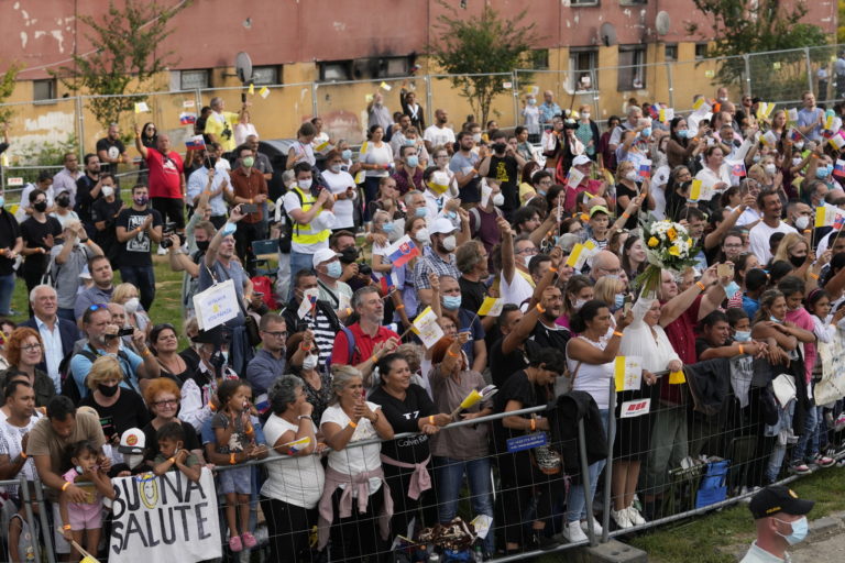 Obyvatelia sídliska Luník IX. počas návštevy pápeža Františka. Košice, 14. september 2021. Foto: SITA/AP.