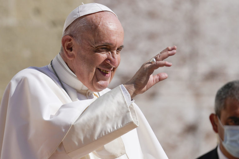 Pápež František na Apoštolskej nunciatúre v Bratislave. Bratislava, 12. september 2021. Foto: SITA/AP