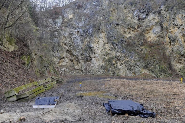 Pohľad do areálu kameňolomu Srdce v Devínskej Novej Vsi po skončení tlačovej besedy pri príležitosti odstraňovania nebezpečného odpadu z kameňolomu. Bratislava, 16. december 2014. Foto: SITA/Ján Slovák