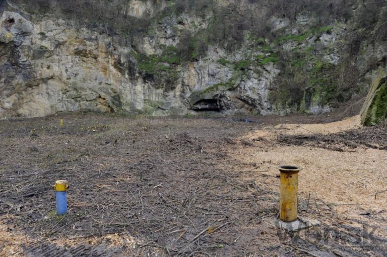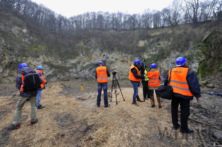 Pohľad do areálu kameňolomu Srdce v Devínskej Novej Vsi po skončení tlačovej besedy pri príležitosti odstraňovania nebezpečného odpadu z kameňolomu. Bratislava, 16. december 2014.