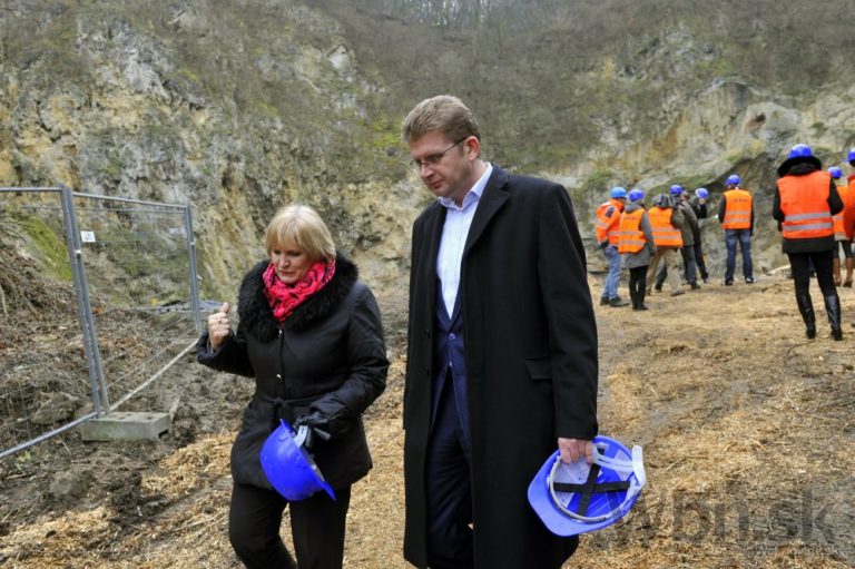 Zľava: Generálna riaditeľka sekcie geológie a prírodných zdrojov Ministerstva životného prostredia SR Vlasta Jánová a minister životného prostredia SR Peter Žiga v areáli kameňolomu po skončení tlačovej besedy pri príležitosti odstraňovania nebezpečného odpadu z kameňolomu Srdce v Devínskej Novej Vsi. Bratislava, 16. december 2014. Foto: SITA/Ján Slovák