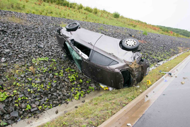 Jednu obeť si vyžiadala ranná nehoda, ktorá sa stala na diaľnici D1 neďaleko Malého Šariša v okrese Prešov. Tridsaťtriročný Prešovčan na Hyundai dostal šmyk, auto sa niekoľkokrát prevrátilo a zostalo stáť mimo cesty. Vodičovi alkohol nezistili, zranil sa ľahko. S ľahšími poraneniami skončila 26-ročná spolujazdkyňa Dominika, na mieste však prišla o život 52-ročná Eva z obce Fričovce. Bratislava, 21. september 2017. Foto: SITA/KR PZ Prešov