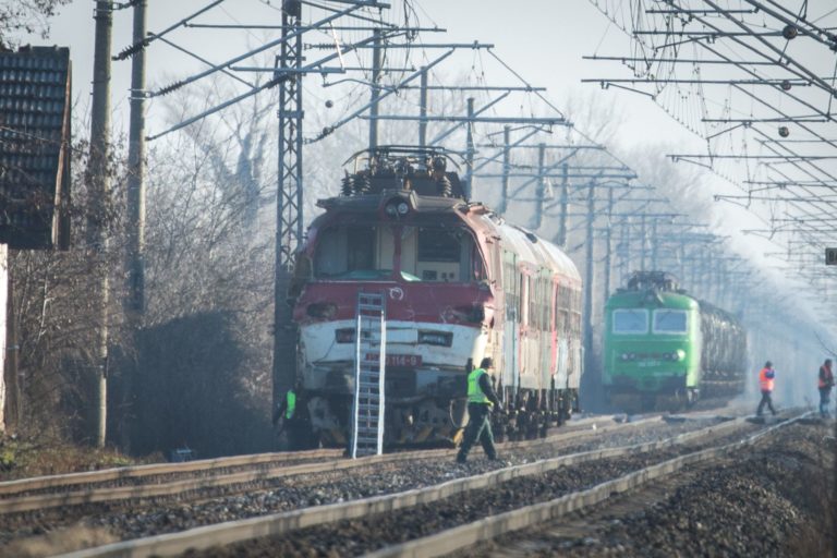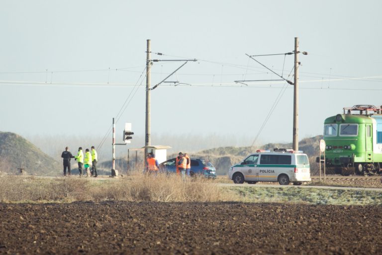 Vyšetrovanie príslušníkov PZ na mieste zrážky osobného vlaku a nákladného auta na trase Senec – Sládkovičovo. Zrážka sa stala okolo 8:30 pri obci Nový Svet v okrese Senec na železničnom priecestí s funkčnou svetelnou signalizáciou. Rušňovodič osobného vlaku nehodu neprežil. Bratislava, 19. december 2017 Foto: SITA/Diana Černáková