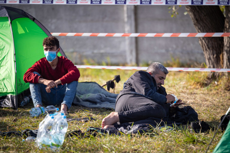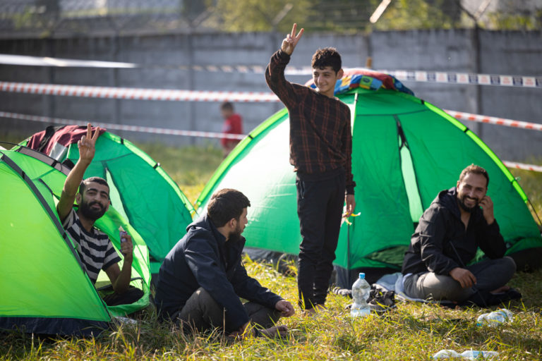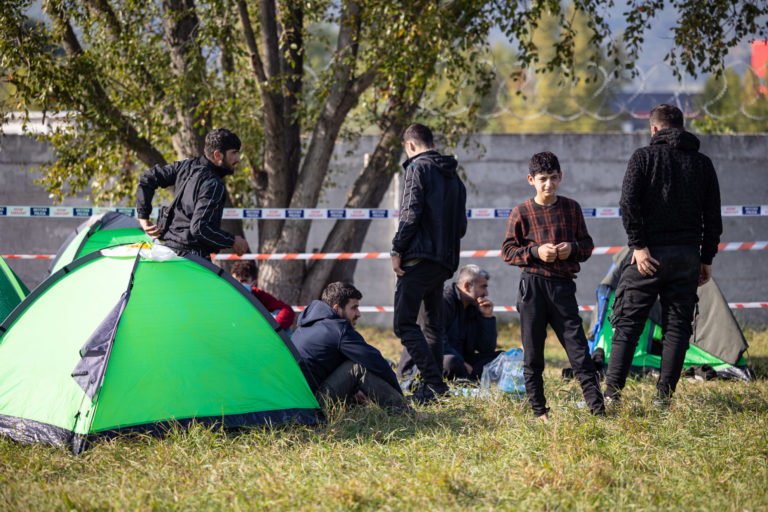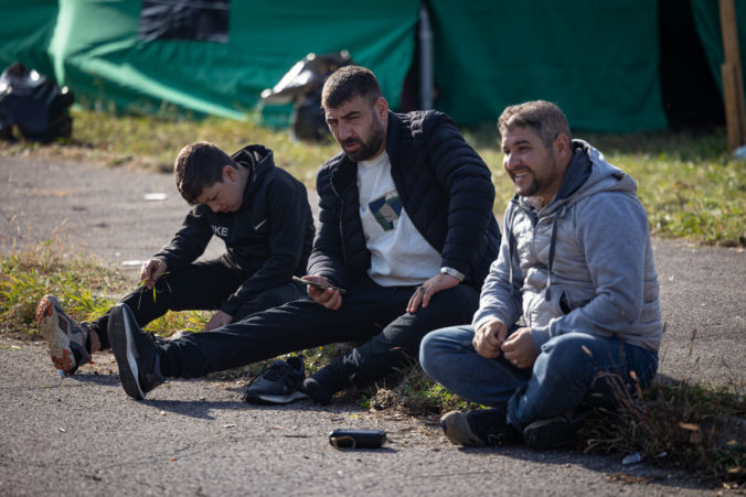 Nelegálni migranti pri cudzineckej polícii v Bratislave počas mimoriadnej situácie, vyhlásenej od 7. októbra 2023 magistrátom mesta, z dôvodu zvýšeného počtu nelegálnych migrantov v Bratislave. Bratislava, 11. október 2023. Foto: SITA/Jana Birošová