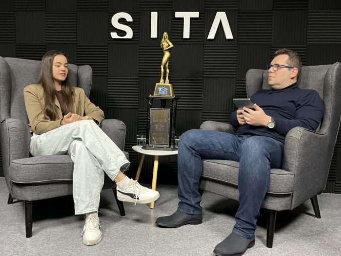 Nelli Novodomská počas rozhovoru pre SITA v podcaste V športovom SITE. Foto: SITA.