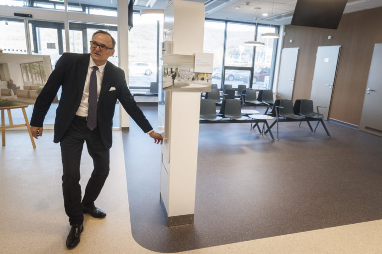 Generálny riaditeľ Nemocnice Bory Ľuboš Lopatka prezentuje informačný terminál v časti urgentného príjmu počas prehliadky novej Nemocnice Bory v Bratislave pri príležitosti tlačovej konferencie na tému: Kolaudačné rozhodnutie, medicínske špecializácie, stavebný a personálny update, predstavenie zdravotníkov zo zahraničia a prvý deň otvorených dverí pre verejnosť. Bratislava, 25. november 2022. Foto: SITA/Branislav Bibel