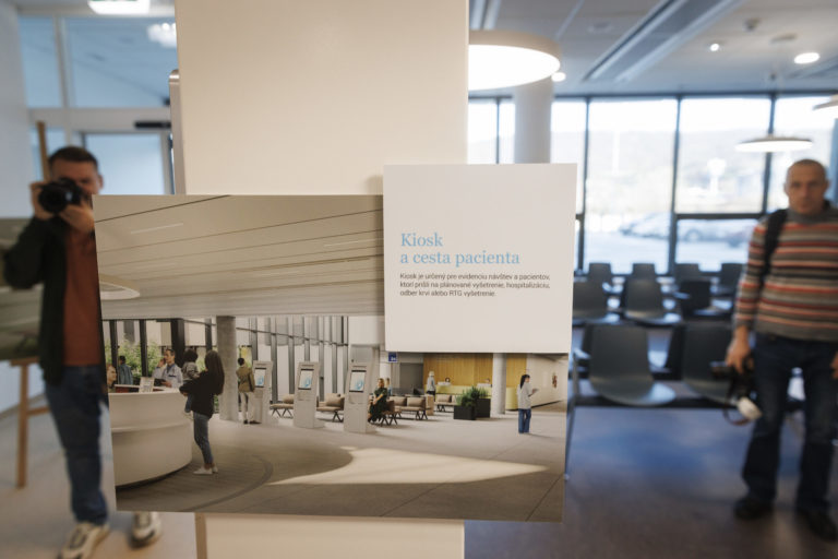 Čakáreň v Nemocnici Bory v Bratislave počas prehliadky pri príležitosti tlačovej konferencie na tému: Kolaudačné rozhodnutie, medicínske špecializácie, stavebný a personálny update, predstavenie zdravotníkov zo zahraničia a prvý deň otvorených dverí pre verejnosť. Bratislava, 25. november 2022. Foto: SITA/Branislav Bibel