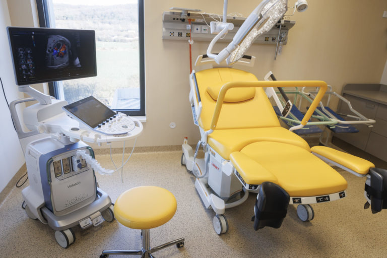 Pôrodná izba v Nemocnici Bory v Bratislave počas prehliadky v rámci tlačovej konferencie na tému: Kolaudačné rozhodnutie, medicínske špecializácie, stavebný a personálny update, predstavenie zdravotníkov zo zahraničia a prvý deň otvorených dverí pre verejnosť. Bratislava, 25. november 2022. Foto: SITA/Branislav Bibel