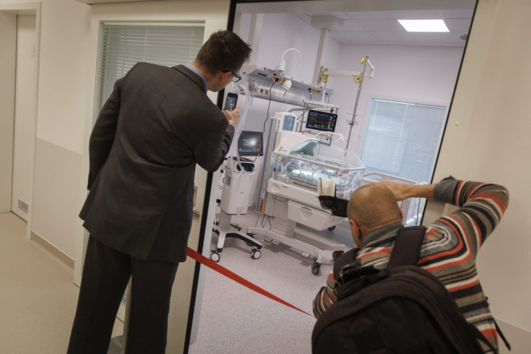 Oddelenie intenzívnej starostlivosti pre novorodencov v Nemocnici Bory v Bratislave počas prehliadky v rámci tlačovej konferencie na tému: Kolaudačné rozhodnutie, medicínske špecializácie, stavebný a personálny update, predstavenie zdravotníkov zo zahraničia a prvý deň otvorených dverí pre verejnosť. Bratislava, 25. november 2022. Foto: SITA/Branislav Bibel