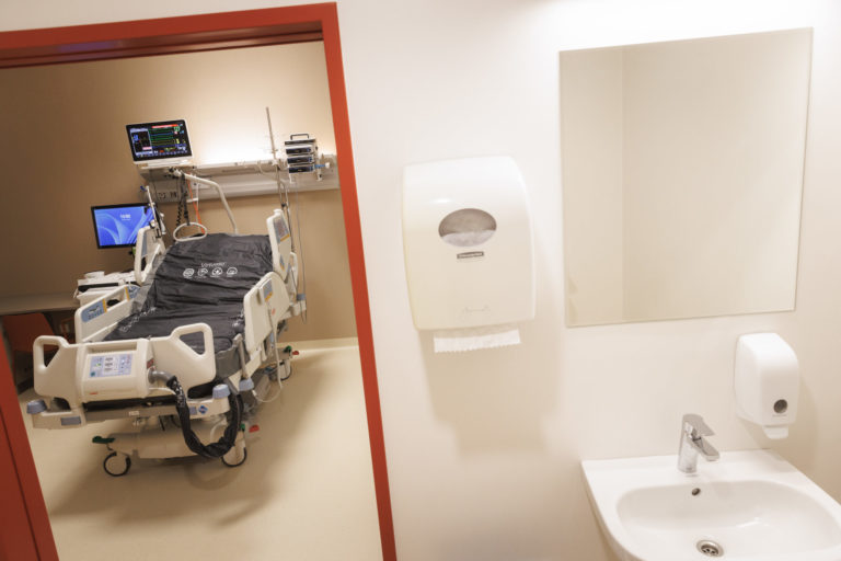 Izba lôžkovej časti v Nemocnici Bory v Bratislave počas prehliadky v rámci tlačovej konferencie na tému: Kolaudačné rozhodnutie, medicínske špecializácie, stavebný a personálny update, predstavenie zdravotníkov zo zahraničia a prvý deň otvorených dverí pre verejnosť. Bratislava, 25. november 2022. Foto: SITA/Branislav Bibel