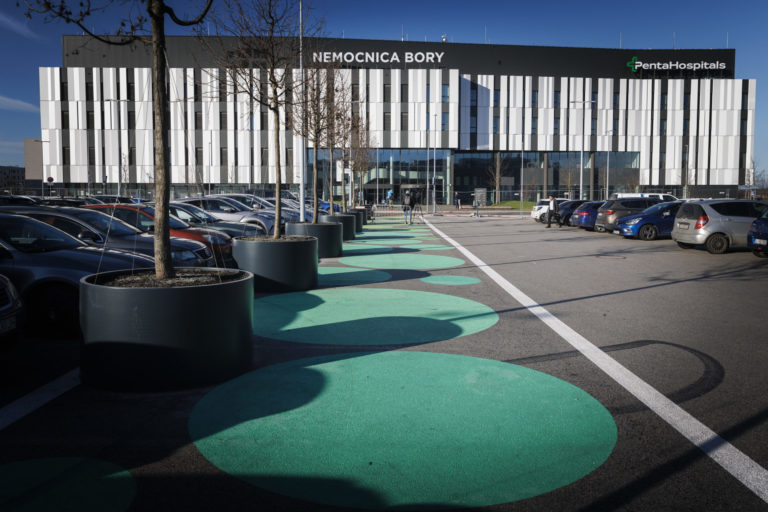 Vstup do Nemocnice Bory v Bratislave počas prehliadky pri príležitosti tlačovej konferencie na tému: Kolaudačné rozhodnutie, medicínske špecializácie, stavebný a personálny update, predstavenie zdravotníkov zo zahraničia a prvý deň otvorených dverí pre verejnosť. Bratislava, 25. november 2022. Foto: SITA/Branislav Bibel