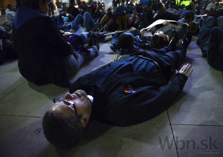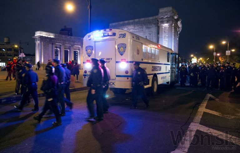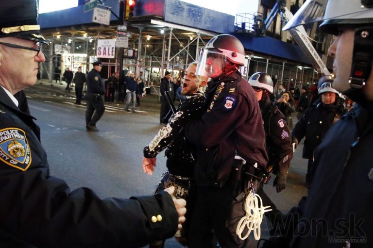 Prevažne pokojné protesty vypukli už v stredu večer na Manhattane vrátane Grand Central Terminal, Times Square a pri Rockefeller Center po tom, čo panel oslobodil policajta Daniela Pantalea v súvislosti s júlovým zabitím Erica Garnera. Foto: SITA/AP