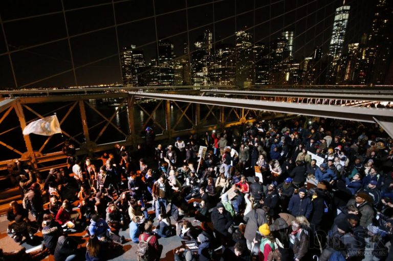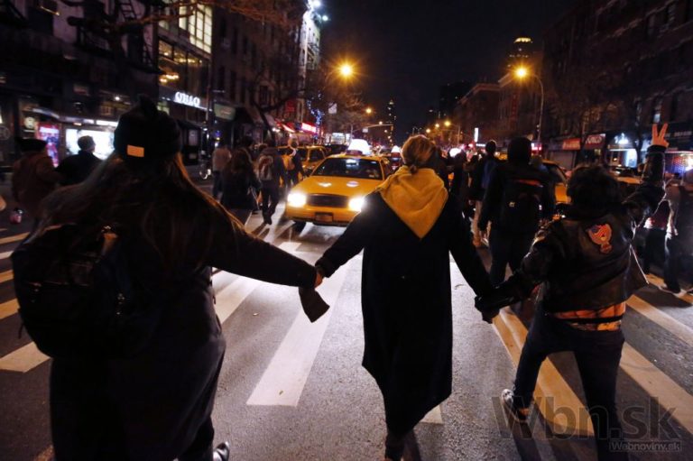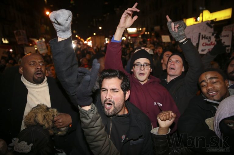 Prevažne pokojné protesty vypukli už v stredu večer na Manhattane vrátane Grand Central Terminal, Times Square a pri Rockefeller Center po tom, čo panel oslobodil policajta Daniela Pantalea v súvislosti s júlovým zabitím Erica Garnera. Foto: shmu.sk